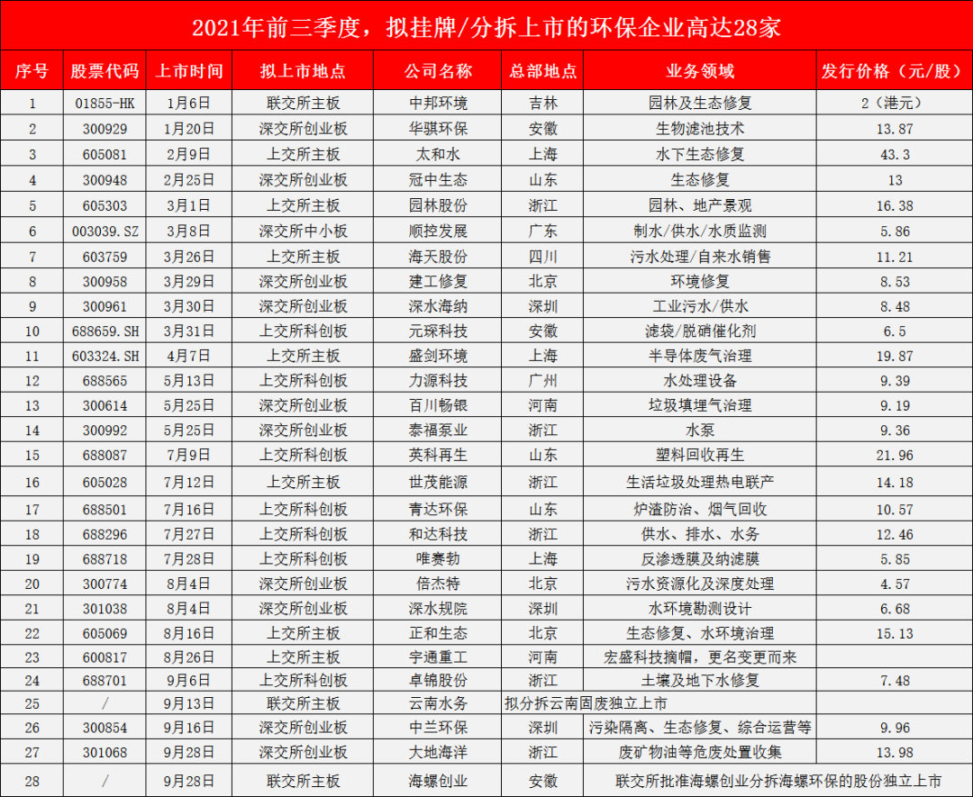 文章導讀十四五開局,已經(jīng)給不少環(huán)保企業(yè)判了死緩,十五五開局或許就是斬首的時刻,到時候沒有真本事的上市環(huán)企會更難受,尤其是帶病上市的,出局或許更快?!敖刂沟?月28日,今年前9個月掛牌/擬分拆上市的環(huán)企已達28家,不僅遠超有環(huán)保IPO大年的2020年,更是突破歷年上市數(shù)量的最大值,再次刷新歷史紀錄?!?..