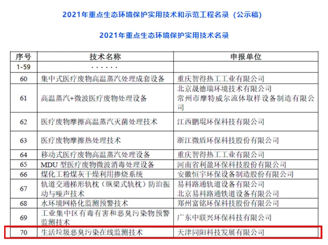 近日,中國環(huán)境保護產(chǎn)業(yè)協(xié)會公示了《2021年重點生態(tài)環(huán)境保護實用技術(shù)和示范工程名錄(公示稿)》,此次公示名錄共篩選出70項“2021年重點生態(tài)環(huán)境保護實用技術(shù)名錄”,65項“2021年重點生態(tài)環(huán)境保護技術(shù)示范工程”。其中天津同陽科技發(fā)展有限公司(以下簡...