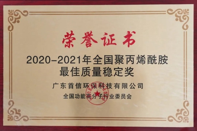 2020-2021年全國聚丙烯酰胺最佳質(zhì)量穩(wěn)定獎(jiǎng)已出爐,本次獲得該項(xiàng)榮譽(yù)的是——廣東首信環(huán)保材料科技有限公司。可喜、可賀、更可嘆!首信環(huán)保獲全國聚丙烯酰胺最佳質(zhì)量穩(wěn)定獎(jiǎng) 事實(shí)上,廣東首信環(huán)保材料科技有限公司(下稱“首信環(huán)保”)已經(jīng)不是第一次獲得該項(xiàng)榮譽(yù)...