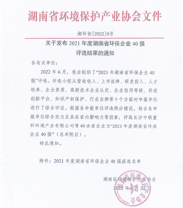 2022年6月24日,中鐵環(huán)境被湖南省環(huán)境保護(hù)產(chǎn)業(yè)協(xié)會(huì)評(píng)選為2021年度湖南省環(huán)保企業(yè)40強(qiáng)。 中鐵環(huán)境自2018年成立以來,主營業(yè)務(wù)持續(xù)聚焦污水處理、固廢處置領(lǐng)域,并大力發(fā)展生態(tài)修復(fù)、綠色建造等領(lǐng)域業(yè)務(wù),突出環(huán)保裝備和材料的創(chuàng)新研發(fā),采用“裝備+服務(wù)”管家新模式,為客服提供...