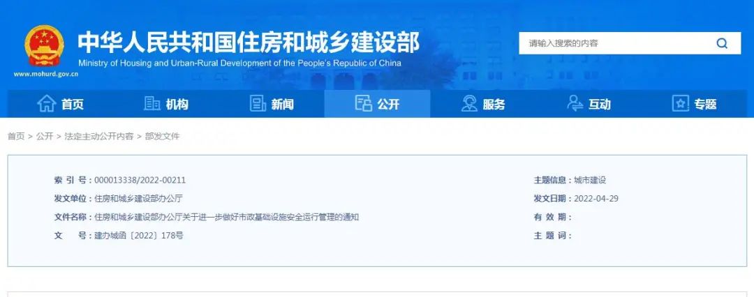 住房和城鄉(xiāng)建設(shè)部辦公廳關(guān)于進(jìn)一步做好市政基礎(chǔ)設(shè)施安全運(yùn)行管理的通知建辦城函〔2022〕178號各省、自治區(qū)住房和城鄉(xiāng)建設(shè)廳,北京市城市管理委、園林綠化局、水務(wù)局,天津市城市管理委、水務(wù)局,上海市住房和城鄉(xiāng)建設(shè)管委、綠化和市容管理局、水務(wù)局,重慶市住房和城鄉(xiāng)建設(shè)委、經(jīng)濟(jì)和信息化委、城市管理局,海南省水...