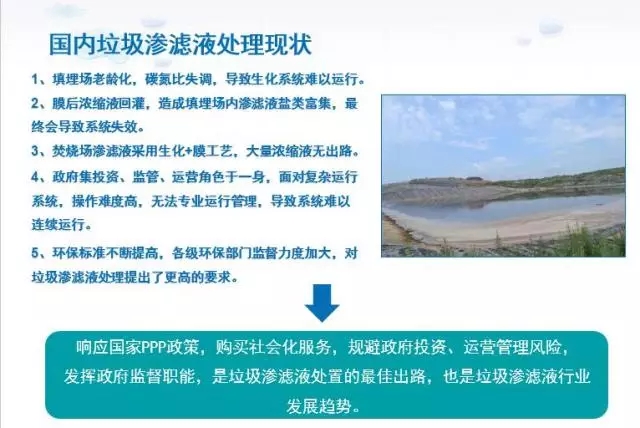 在2017年5月中國(guó)環(huán)聯(lián)第一屆固廢技術(shù)論壇上,大連廣泰源環(huán)??萍加邢薰緦?duì)我國(guó)滲濾液處理現(xiàn)狀進(jìn)行了總結(jié),并對(duì)垃圾滲濾液的處置提出了響應(yīng)國(guó)家PPP政策,購(gòu)買社會(huì)化服務(wù),規(guī)避政府投資、運(yùn)營(yíng)管理風(fēng)險(xiǎn),發(fā)揮政府監(jiān)督職能,是垃圾滲濾液處置的行業(yè)發(fā)展趨勢(shì)。