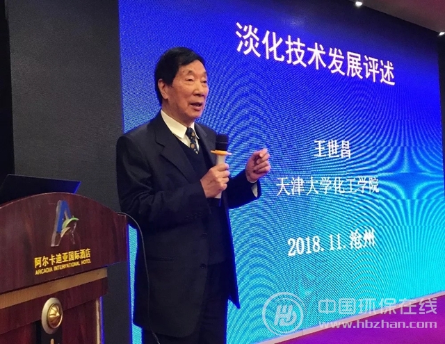 隨后,國內(nèi)海水淡化知名專家天津大學(xué)王世昌教授為我們帶來了題為《淡化技術(shù)發(fā)展評(píng)述》的報(bào)告。王老師講到,1974年,從“科技組”第一次全國海水淡化會(huì)議開始,我國的海水淡化技術(shù)正式進(jìn)入大眾視線,歷經(jīng)發(fā)展,在IDA和GWI的第30版脫鹽年度報(bào)告中欣喜地看到,2006-2017年全球脫鹽產(chǎn)能前20名工程公司榜單中,杭州水處理中心和上海電氣赫然在列,國產(chǎn)反滲透膜殼和反滲透膜也有了大量應(yīng)用,彰顯了我國海水淡化技術(shù)取得的巨大進(jìn)步。同時(shí),王老師從脫鹽技術(shù)的更新與創(chuàng)新、智能技術(shù)應(yīng)用研究、MED-AD耦合過程、新的能量回收技術(shù) IPER(GEW&PT)四個(gè)部分對(duì)淡化技術(shù)的更新進(jìn)行了闡述。