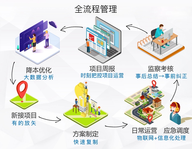 當前,環(huán)衛(wèi)服務(wù)企業(yè)普遍存在成本高、過程亂、質(zhì)量差、風(fēng)險大、經(jīng)驗缺的難題?;谧灾鳝h(huán)衛(wèi)車、全流程管理、全平臺應(yīng)用、靈活多變云平臺等獨特系統(tǒng)優(yōu)勢,宇通智慧環(huán)衛(wèi)云平臺直擊五大管理痛點,全面應(yīng)用物聯(lián)網(wǎng)、云計算、GIS地理信息系統(tǒng)、移動互聯(lián)網(wǎng)技術(shù)和大數(shù)據(jù)等前沿技術(shù),基于SaaS模式為用戶提供從成本、過程、質(zhì)量、風(fēng)險和經(jīng)驗積累等多個方面運營管理服務(wù),實現(xiàn)從項目承接、方案定制、日常運營、應(yīng)急調(diào)度、監(jiān)察考核、項目周報到降本優(yōu)化的環(huán)衛(wèi)業(yè)務(wù)全生命流程管控,優(yōu)化管理流程,簡化工作強度,降低對項目經(jīng)理經(jīng)驗的依賴,讓初級水平的項目經(jīng)理都能看得到、講得清、管得好。