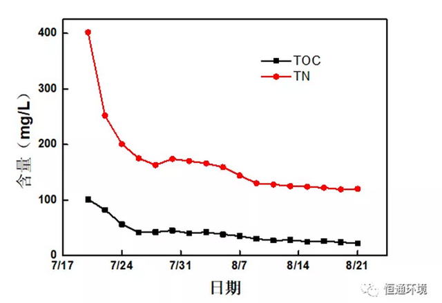 對修復前、修復后連續(xù)五周進行定點泥樣采集,測定底泥間隙水中TOC、TN和TP含量,結(jié)果顯示底泥中污染物釋放量在修復后一周內(nèi)急劇降低,間隙水中TOC、TN和TP含量分別降低41.23%,43.53%和34.12%,表明新型的底泥原位修復技術(shù)對八干渠河道底泥污染物實現(xiàn)高效快速控制。