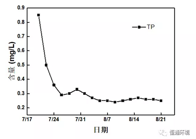 八干渠河道底泥修復前后間隙水總磷含量變化
