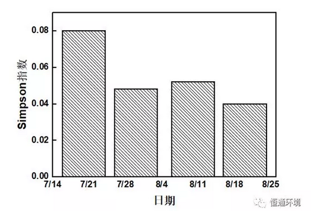 八干渠河道底泥原位修復前后Simpson指數(shù)變化