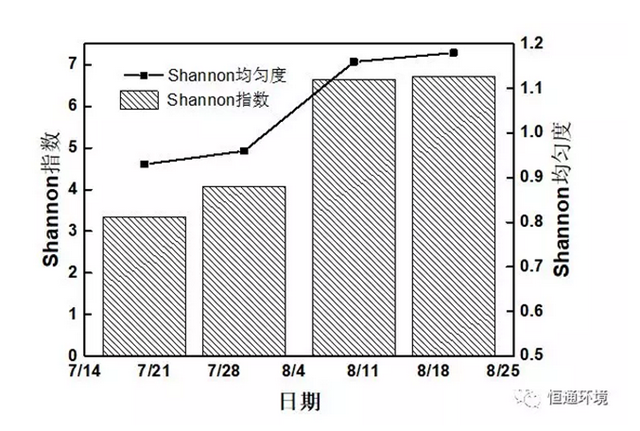 八干渠河道底泥原位修復前后Shannon指數(shù)和均勻度變化