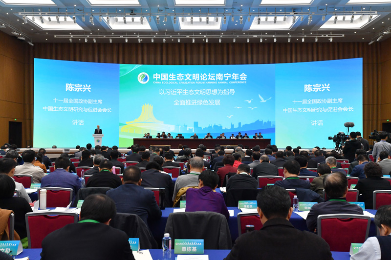 12月15日至16日,中國生態(tài)文明論壇年會在廣西壯族自治區(qū)南寧市召開。本次會議以“生態(tài)文明 綠色發(fā)展——深入學(xué)習(xí)貫徹習(xí)近平生態(tài)文明思想 建設(shè)天藍(lán)、地綠、水清的美麗中國”為主題。十一屆全國政協(xié)副主席、中國生態(tài)文明研究與促進(jìn)會會長陳宗興,生態(tài)環(huán)境部黨組書記、部長李干杰出席開幕式并講話,廣西壯族自治區(qū)黨委副書記、人民政府主席陳武,廣西壯族自治區(qū)黨委常委、南寧市委書記王小東出席開幕式并致辭。生態(tài)環(huán)境部副部長黃潤秋主持開幕式。