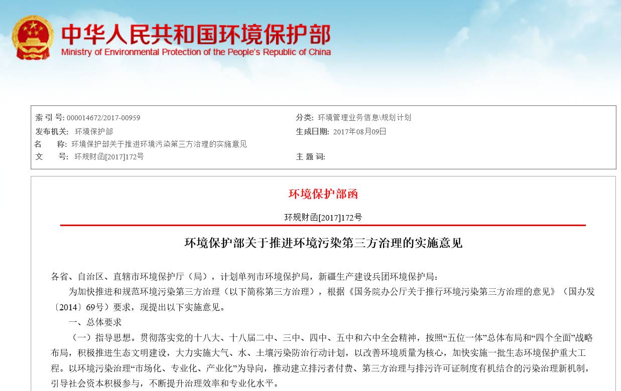 環(huán)境保護部關(guān)于推進環(huán)境污染第三方治理的實施意見