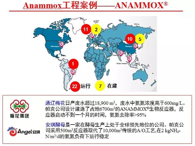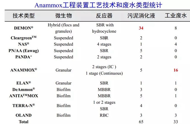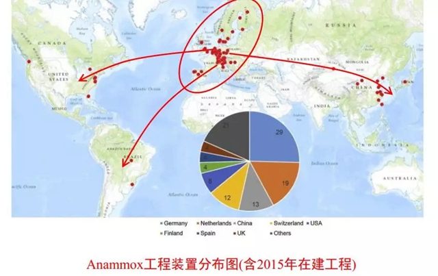 目前,Anammox主要用于污泥消化液和含高氨氮工業(yè)廢水的處理,且技術發(fā)展已較為成熟,在美國、德國、瑞士等有較多的應用案例。