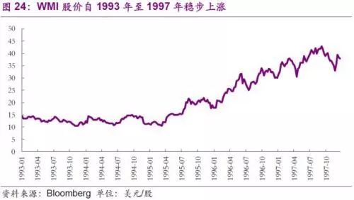 進(jìn)入90年代,公司不滿足于現(xiàn)有的業(yè)務(wù)模式,意圖通過繼續(xù)的并購開拓多元化市場。然而結(jié)果卻超出了公司的預(yù)想。公司于1993年更名為WMX Technologies,意在體現(xiàn)公司多元化的業(yè)務(wù)范圍。通過收購,公司先后進(jìn)入危廢、石棉移除、金屬腐蝕處理、甚至是草坪養(yǎng)護(hù)市場。與之前的垃圾焚燒和垃圾回收不同的是,上述行業(yè)在初期均需要大量資金投入,回報卻極其有限。公司的多領(lǐng)域擴張在一開始收到了回報,股價從1993年初的8.87美元一路上揚至1997年初的18.86美元,漲幅達(dá)112%。