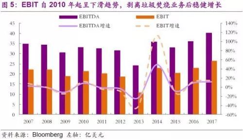 第二次剝離則發(fā)生在2014年,公司退出了對中國市場的股權(quán)投資,同時剝離了全資子Wheelabrator公司以及全部的垃圾焚燒業(yè)務(wù)。