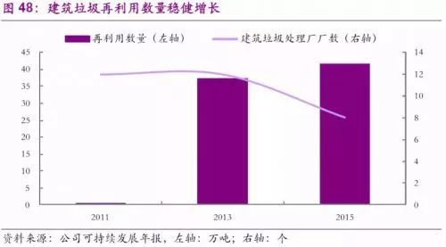 早在2000年初,公司便積極發(fā)展建筑垃圾的回收工作。公司在2009年至2014年間,通過10余家建筑垃圾回收廠占據(jù)了穩(wěn)定市場份額,建筑行業(yè)的季節(jié)性高峰特性也為公司在夏季的營業(yè)收入做出了可觀貢獻(xiàn)。而在2011年,公司又創(chuàng)新式的推出了“分散回收跟蹤工具”,通過跟蹤使用在工程中的重復(fù)利用建筑材料,幫助工程項目方更好地完成綠色建筑的目標(biāo)。截止2015年,通過跟蹤工具的幫助,已有多達(dá) 41萬噸的建筑垃圾得到回收或再利用,比2013年的37萬噸增長10%。