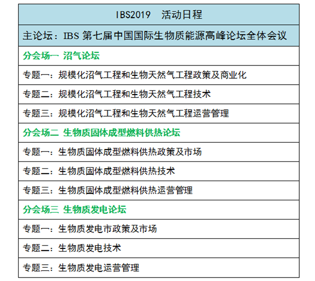 IBS2019將在兩天的會(huì)議中,開(kāi)展生物質(zhì)沼氣論壇、生物質(zhì)發(fā)電、生物質(zhì)固體成型燃料和供熱三大專(zhuān)場(chǎng)。從“沼氣工程和生物天然氣工程政策及商業(yè)化(及沼氣設(shè)備),沼氣工程和生物天然氣工程技術(shù)及工程運(yùn)營(yíng)管理”到“生物質(zhì)原料收儲(chǔ)運(yùn)技術(shù)與裝備、生物質(zhì)發(fā)電市政策及市場(chǎng)、燃煤生物質(zhì)耦合發(fā)電技術(shù)及發(fā)展、生物質(zhì)直燃發(fā)電技術(shù)及設(shè)備應(yīng)用、生物質(zhì)發(fā)電運(yùn)營(yíng)管理、生物質(zhì)電廠的電氣及過(guò)程自動(dòng)化控技術(shù)與裝備”再到“生物質(zhì)固體成型燃料供熱政策及市場(chǎng),生供熱技術(shù)與供熱運(yùn)營(yíng)管理”,精心設(shè)置議題,搭建學(xué)術(shù)企業(yè)共同交流合作的橋梁。