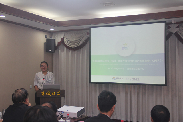 “ 2019第四屆中原經(jīng)濟(jì)區(qū)(鄭州)環(huán)保產(chǎn)業(yè)暨水環(huán)境治理博覽會(huì)“(簡(jiǎn)稱:中原環(huán)保展)組委會(huì)代表徐培華經(jīng)理,匯報(bào)了工作進(jìn)展情況。