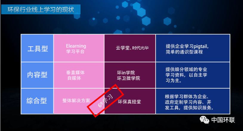 當(dāng)前環(huán)保行業(yè)人才缺口達(dá)300萬,且存在現(xiàn)有人員崗位技能合格率低以及企業(yè)和個(gè)人自我賦能乏力的問題。大型企業(yè)在提升工作人員技能方面,一般采取企業(yè)內(nèi)訓(xùn)、購買培訓(xùn)服務(wù)及外出參加培訓(xùn)的方式,但95%的中小微企業(yè)由于資金、管理機(jī)制等方面的不足,面臨員工培訓(xùn)機(jī)制不完善的困境。對(duì)此,阮洪銀提出了6o學(xué)習(xí)的模式:即將終身學(xué)習(xí)、系統(tǒng)化學(xué)習(xí)、組織化學(xué)習(xí),學(xué)習(xí)與愛好多重,學(xué)習(xí)與生活多重,多對(duì)多,老師與學(xué)生角色多重,學(xué)習(xí)與營(yíng)銷多重等六維度相結(jié)合,重新定義“知識(shí)”含義與獲取路徑,重新定義企業(yè)商業(yè)信息宣發(fā)路徑。