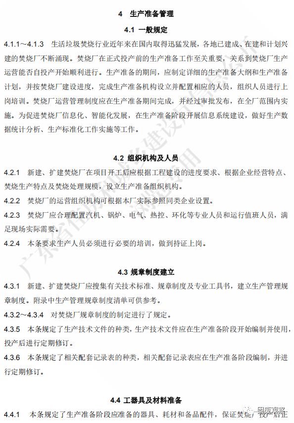 4.3.1 新建、擴(kuò)建焚燒廠應(yīng)建立生產(chǎn)管理規(guī)章制度,可參考附錄的制度清單編寫。