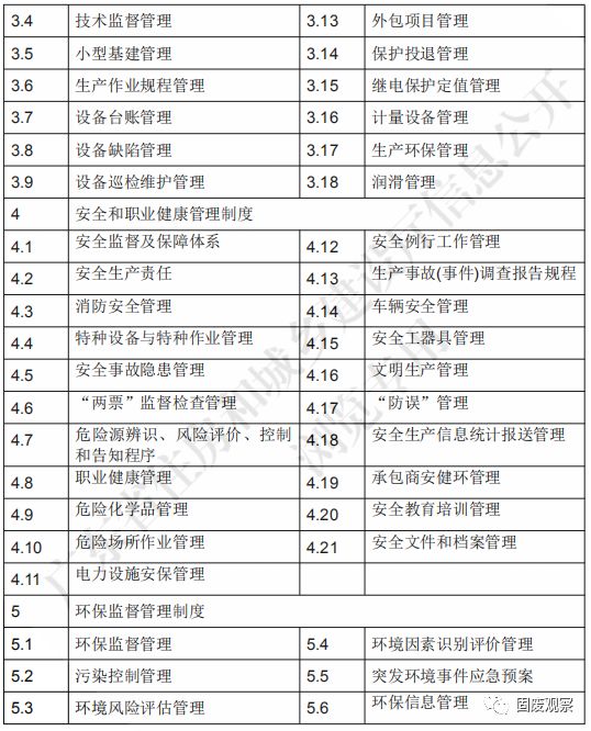 4.3.4 生產(chǎn)管理制度應(yīng)包括但不限于安全管理制度、運(yùn)行管理制度、檢修管理制度、安 全和職業(yè)健康管理制度、環(huán)保監(jiān)督管理制度等。