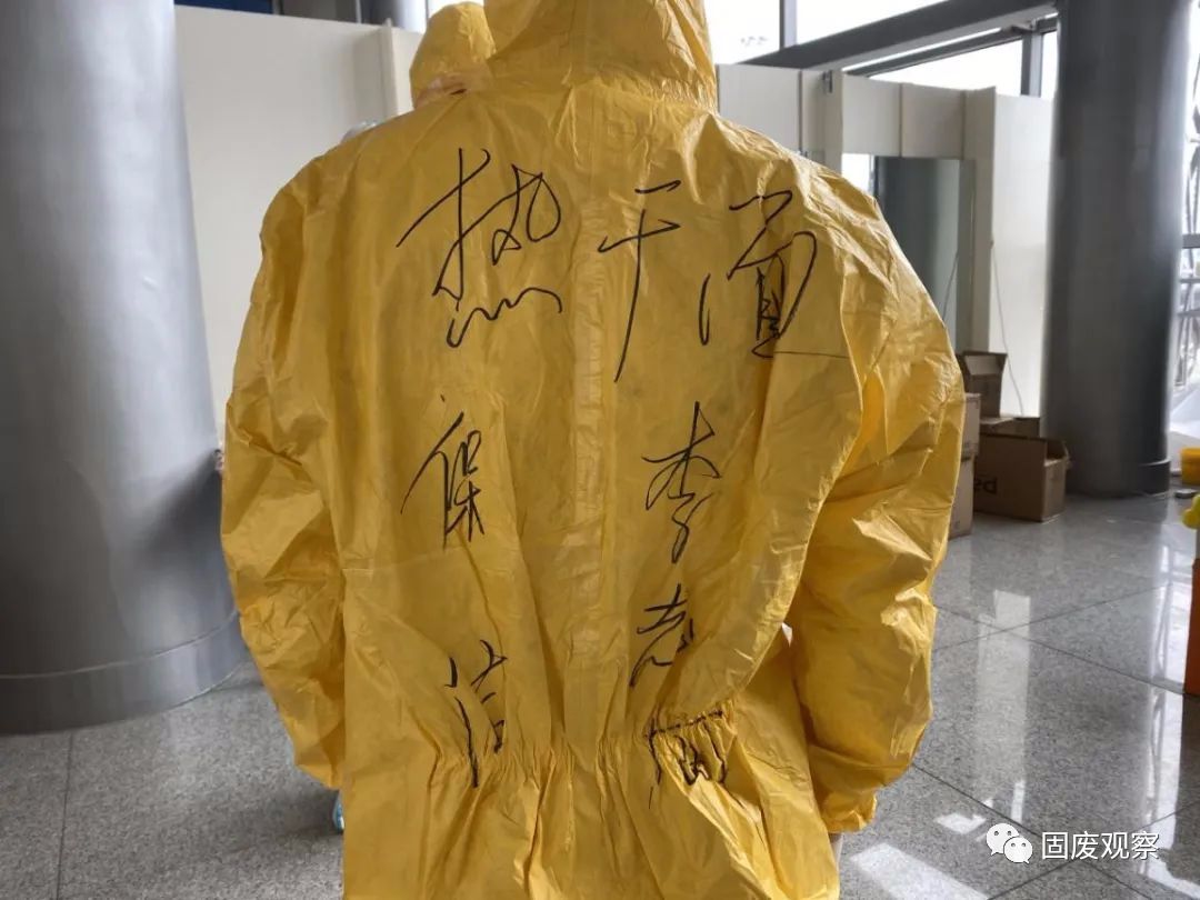 李志威和班友們,來自于漢陽城管一支清潔隊,他們主要負責漢陽國博方艙醫(yī)院環(huán)衛(wèi)工作。每次進入方艙前,他們都會在防護服最醒目的位置寫上自己的姓名和“熱干面”“面窩”“撮蝦子”“帶一腳”等漢味小吃和武漢方言。