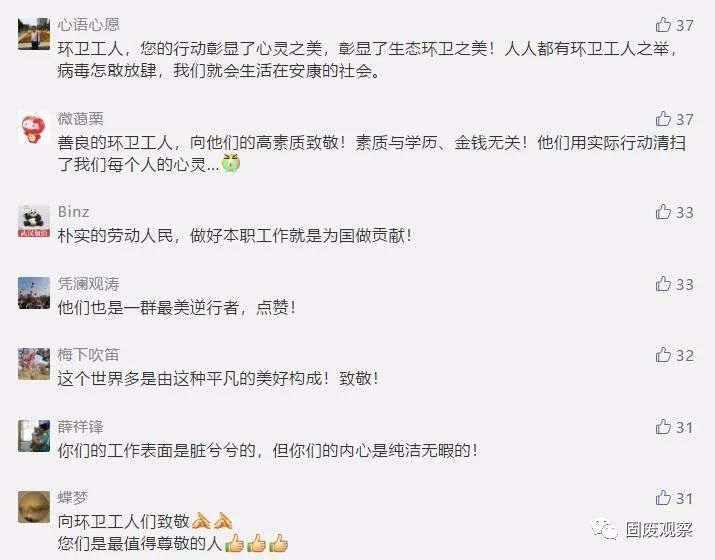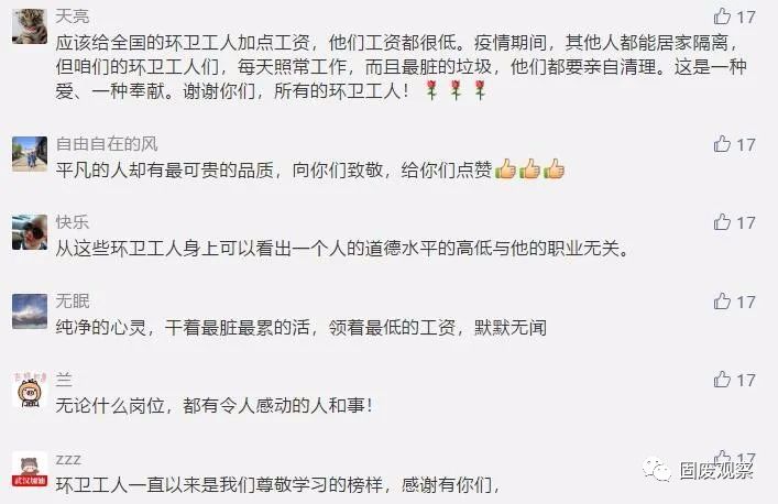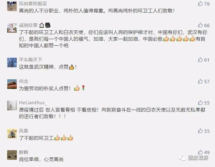 近日,荊楚網一篇《武漢隔離的環(huán)衛(wèi)工退房后,酒店經理邊查房邊抹淚》的微信,讓無數讀者落淚,并紛紛點贊:“她們是最美最可敬的人!”“平凡的崗位造就了不平凡的人”“他們不僅打掃看得見的垃圾,還能清潔我們心靈里的灰塵”“我含著眼淚向這群擁有最美心靈的姐妹們致敬!”“平凡的人們給我最多感動!”