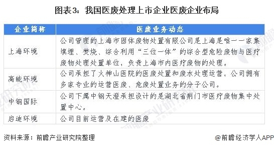 目前我國醫(yī)廢領域布局的企業(yè)較少,暫未形成激烈競爭的局面,相關的上市公司有上海環(huán)境、高能環(huán)境、中鋼國際、啟迪環(huán)境等。以下是4家與疫情期間醫(yī)廢處理相關的上市公司的布局情況: