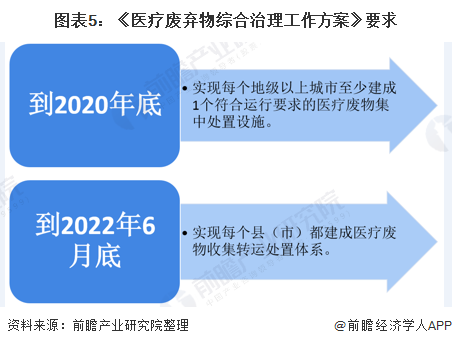 2020年2月,國(guó)家衛(wèi)健委、生態(tài)環(huán)境部等十部委聯(lián)合印發(fā)《醫(yī)療廢棄物綜合治理工作方案》,《方案》要求,要在2020年年底前實(shí)現(xiàn)每個(gè)地級(jí)以上城市至少建成1個(gè)符合運(yùn)行要求的醫(yī)療廢物集中處置設(shè)施;到2022年6月底前,實(shí)現(xiàn)每個(gè)縣(市)都建成醫(yī)療廢物收集轉(zhuǎn)運(yùn)處置體系。