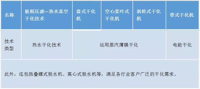 污泥干化可分為機(jī)械干化和熱干化兩大類型,機(jī)械干化是通過機(jī)械脫水設(shè)備進(jìn)行物理干化的工藝,因其發(fā)展歷史悠久,現(xiàn)在市場上已出現(xiàn)板框、槳葉和原盤式干化機(jī)。熱干化顧名思義是利用熱源對污泥直接或間接進(jìn)行水分蒸發(fā)干化,直接制造熱源的成本通常比機(jī)械干化高。