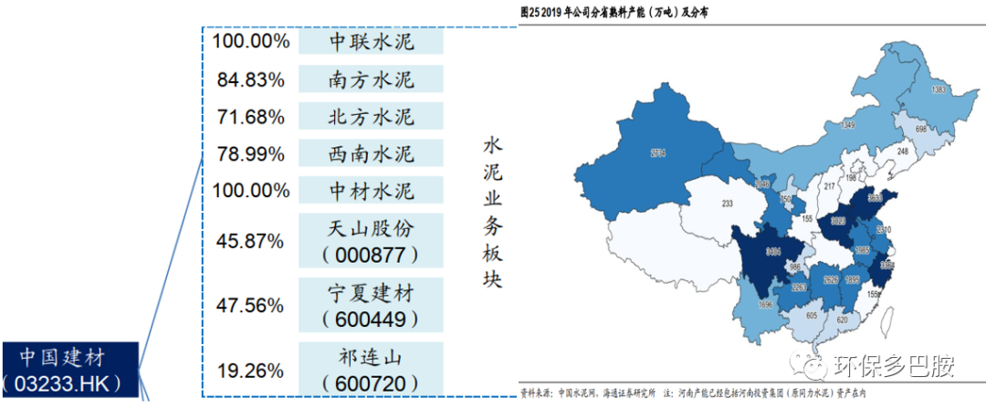 2019年海螺創(chuàng)業(yè)與水泥產(chǎn)能宇宙第一的中國建材(2019年公司水泥產(chǎn)能5.2億噸)成立合資公司:海建香港(股份各占50%,由海螺創(chuàng)業(yè)并表) ,并通過海建香港成立安徽海中環(huán)保開展業(yè)務(wù),全權(quán)負(fù)責(zé)投資、經(jīng)營及管理中國建材從事水泥相關(guān)業(yè)務(wù)的若干附屬公司現(xiàn)有及未來的固廢處置業(yè)務(wù),預(yù)計(jì)規(guī)劃處置總產(chǎn)能不少于 300 萬噸/年。