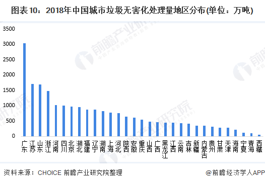 從無害化處理區(qū)域分布來看,我國各個區(qū)域之間有較大的區(qū)別。2018年,北京、上海、江蘇、浙江、安徽、湖北、湖南、廣西、海南以及重慶等地均已實(shí)現(xiàn)生活垃圾全面無害化處理。