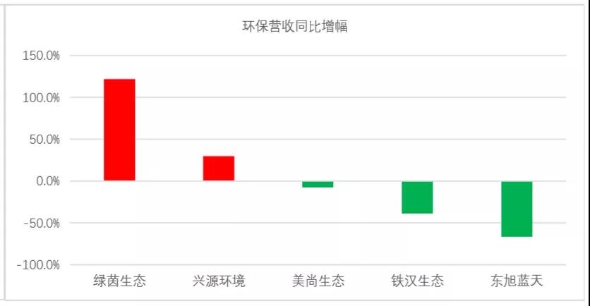 2019年環(huán)境修復(fù)A股環(huán)保上市公司環(huán)保營收同比增幅排名: