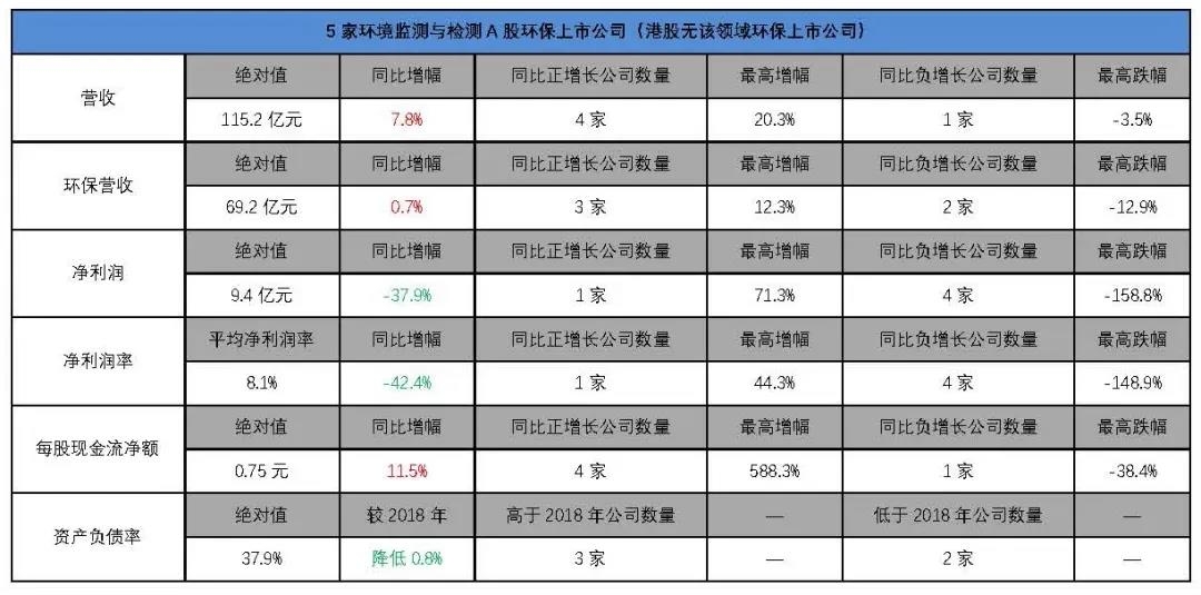 2019年環(huán)境監(jiān)測與檢測環(huán)保上市公司主要業(yè)績指標(biāo):