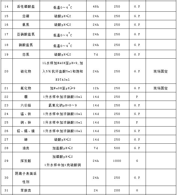 各種項目水樣的不同保存條件見附表。