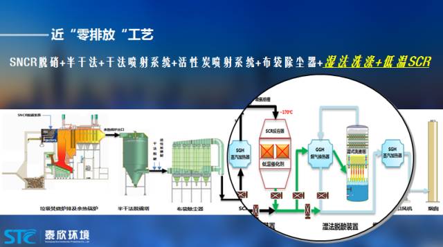 煙氣要求越來越嚴,有什么技術手段呢?我們在杭州九峰垃圾焚燒廠做了一個項目,工藝如下: