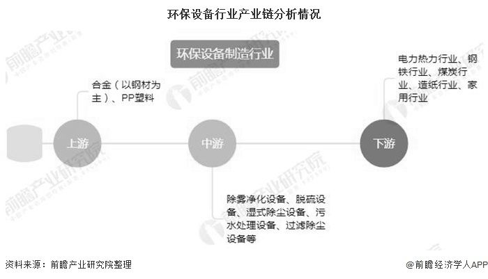 中國(guó)環(huán)保產(chǎn)業(yè)鏈的結(jié)構(gòu),主要包括上游市場(chǎng)即工業(yè)“三廢”的排放,以及在生活中產(chǎn)生的廢品,廢水等。環(huán)保設(shè)備制造是中國(guó)環(huán)保產(chǎn)業(yè)鏈中的重要組成部分,其上游主要是生產(chǎn)設(shè)備所需的鋼材、有色金屬、PP塑料等原材料,下游主要包括電力熱力行業(yè)、鋼鐵、煤炭行業(yè)、造紙行業(yè)等。