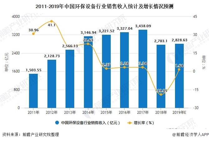 4、2019年中國(guó)環(huán)保設(shè)備行業(yè)銷售收入將超2800億元