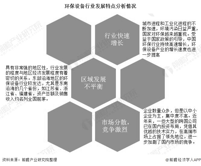 環(huán)保設(shè)備行業(yè)的發(fā)展共有三大特點(diǎn),分別是行業(yè)快速增長(zhǎng)、區(qū)域發(fā)展不平衡及市場(chǎng)分散,競(jìng)爭(zhēng)激烈。具體分析如下: