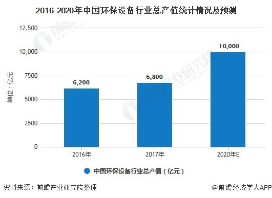 2、2020年中國(guó)環(huán)保設(shè)備行業(yè)總產(chǎn)值或?qū)⑼黄迫f(wàn)億元