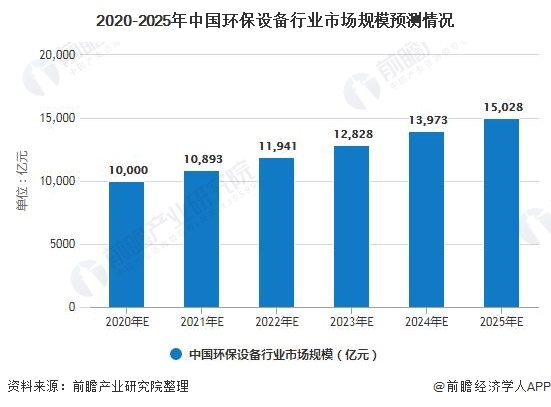 預(yù)計(jì)2020年,環(huán)保裝備制造業(yè)市場(chǎng)規(guī)模將達(dá)到10000億元,2025年市場(chǎng)規(guī)模將達(dá)到15028億元。
