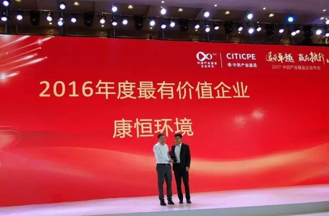 “2017中信產(chǎn)業(yè)基金企業(yè)年會”在杭州盛大召開,多家中信產(chǎn)業(yè)基金控股企業(yè)參加本屆年會。在本屆年會中,康恒環(huán)境斬獲六項獎項中的三項,榮獲中信產(chǎn)業(yè)基金2016年度唯一一家“最有價值企業(yè)”獎,同時榮獲“2016年度最佳執(zhí)行力獎”,康恒環(huán)境董事長兼CEO龍吉生博士榮獲“2016年度優(yōu)秀CEO獎"。