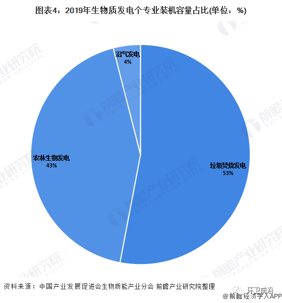 截至2019年底在各類生物質(zhì)能中,垃圾焚燒發(fā)電裝機容量占生物質(zhì)發(fā)電裝機總?cè)萘康?3%,排名第一;農(nóng)林生物發(fā)電裝機容量占比為43%;沼氣發(fā)電裝機容量占比為4%。