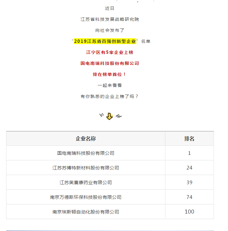 近日,江蘇省科技情報研究與江蘇省科技發(fā)展戰(zhàn)略研究院分別發(fā)布了“南京市2019年度百強高新技術企業(yè)”名單、“2019年江蘇省百強創(chuàng)新型企業(yè)”名單,南京萬德斯環(huán)??萍脊煞萦邢薰就瑫r位列兩張榜單之中,成為“高新創(chuàng)新雙百”企業(yè)中的一顆耀眼之星。