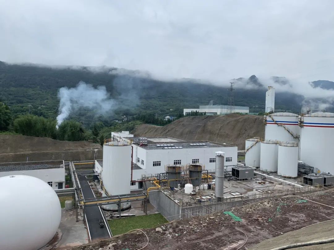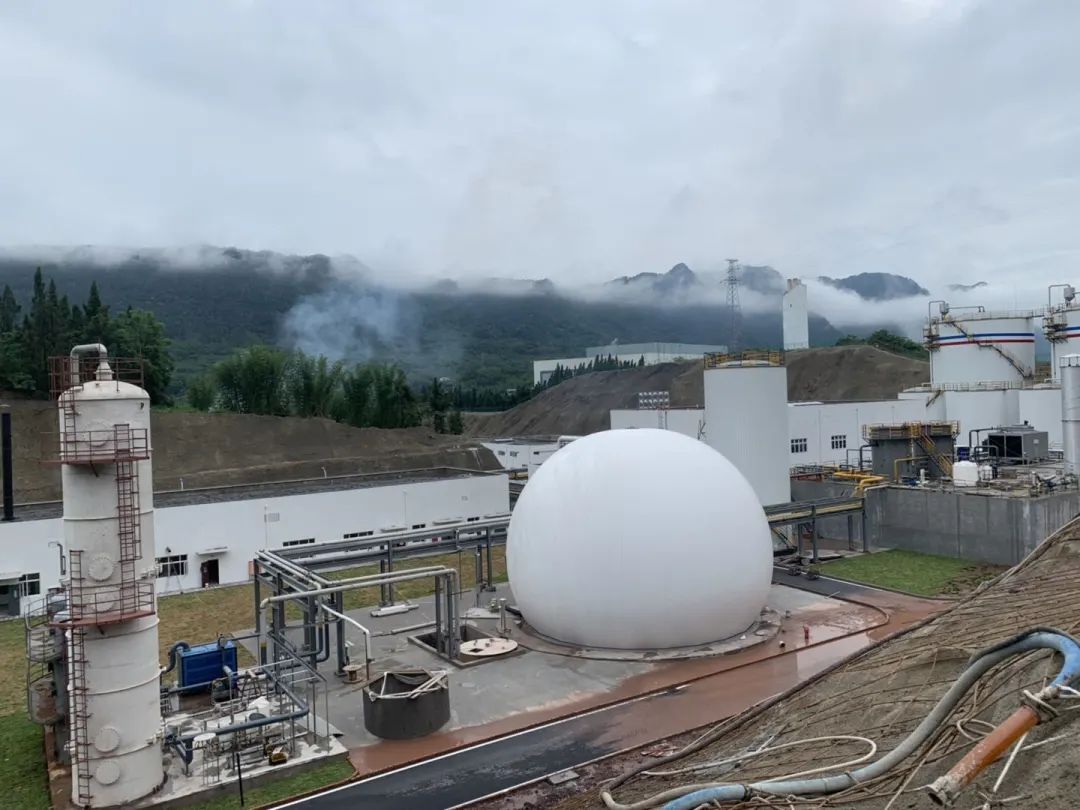 現(xiàn)場的設(shè)備涉及到厭氧罐、調(diào)節(jié)罐、中儲罐、干式脫硫塔、沼氣儲罐、脫氮罐、火炬、MBR膜系統(tǒng)、熱平衡系統(tǒng)等。如圖所示: