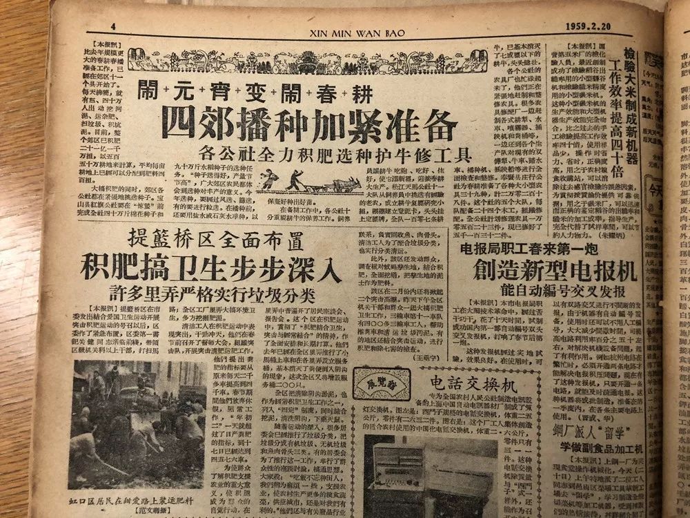 1959年2月20日《新民晚報》刊載消息“提籃橋區(qū)......許多里弄嚴格實行垃圾分類”