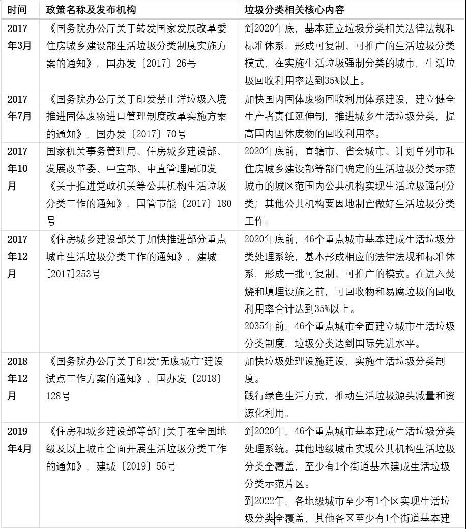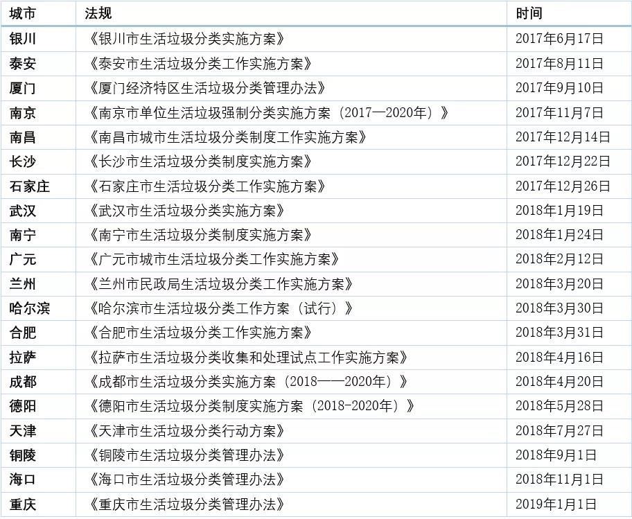 2017年底,住房城鄉(xiāng)建設(shè)部發(fā)布《關(guān)于加快推進部分重點城市生活垃圾分類工作的通知》,要求2018年3月底前,46個重點城市要出臺生活垃圾分類管理實施方案或計劃行動,明確年度工作目標(biāo),量化工作任務(wù)。