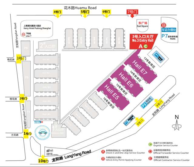 1.乘坐地鐵的參會代表,建議在7號線花木路站5號出口出站,經(jīng)上海新國際博覽中心2號入口大廳進入展廳。