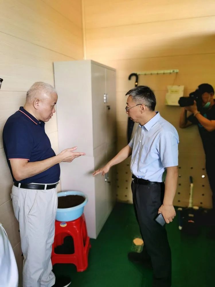 在東風(fēng)橋廚余垃圾源頭減量試點,張小宏司長詳細(xì)了解廚余垃圾源頭處理和資源化利用情況,海南金特爾環(huán)??萍加邢薰矩?fù)責(zé)人做工藝介紹。