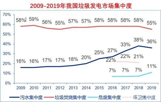 垃圾發(fā)電市場(chǎng)集中度基本在55-60%,當(dāng)前頭部集中趨勢(shì)明顯:資金實(shí)力強(qiáng)、融資成本低、運(yùn)營(yíng)/成本控制能力強(qiáng)的企業(yè)逐漸擴(kuò)大了市場(chǎng)影響力,做大做強(qiáng);加上國(guó)家環(huán)保趨勢(shì)、補(bǔ)貼新政和市場(chǎng)下沉,使得龍頭企業(yè)競(jìng)爭(zhēng)更加集中;