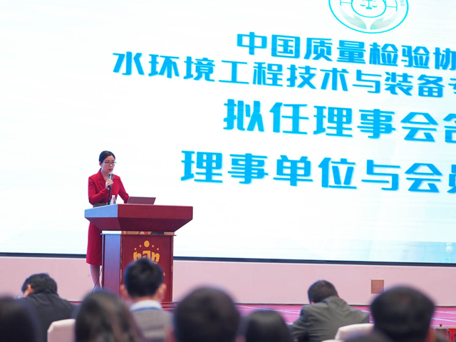 隨后中國質(zhì)量檢驗協(xié)會水環(huán)境工程技術(shù)與裝備專委會常務(wù)副秘書長,青島中質(zhì)脫鹽質(zhì)量檢測有限公司總經(jīng)理苑萍向大會作了專委會換屆大會籌備會工作匯報。