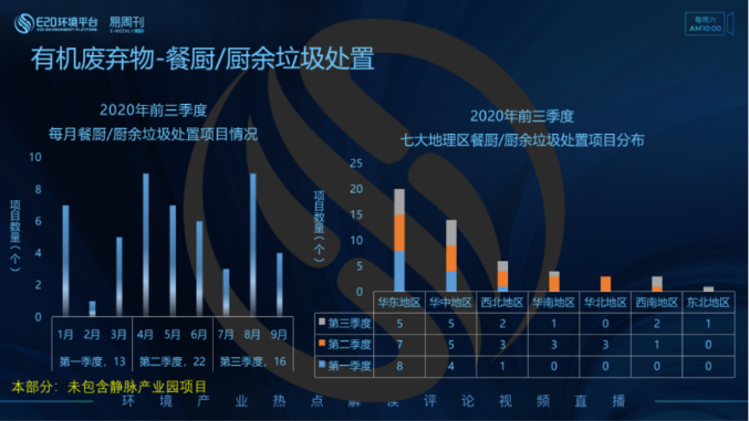 左圖為2020年前三季度每月餐廚/廚余垃圾處置項(xiàng)目的中標(biāo)情況,其中第一季度中標(biāo)12個(gè)項(xiàng)目,第二季度中標(biāo)22個(gè)項(xiàng)目,第三季度中標(biāo)16個(gè)項(xiàng)目。